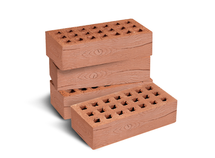 Кирпич лицевой пустотелый одинарный «Кора дуба» 1НФ терракотовый